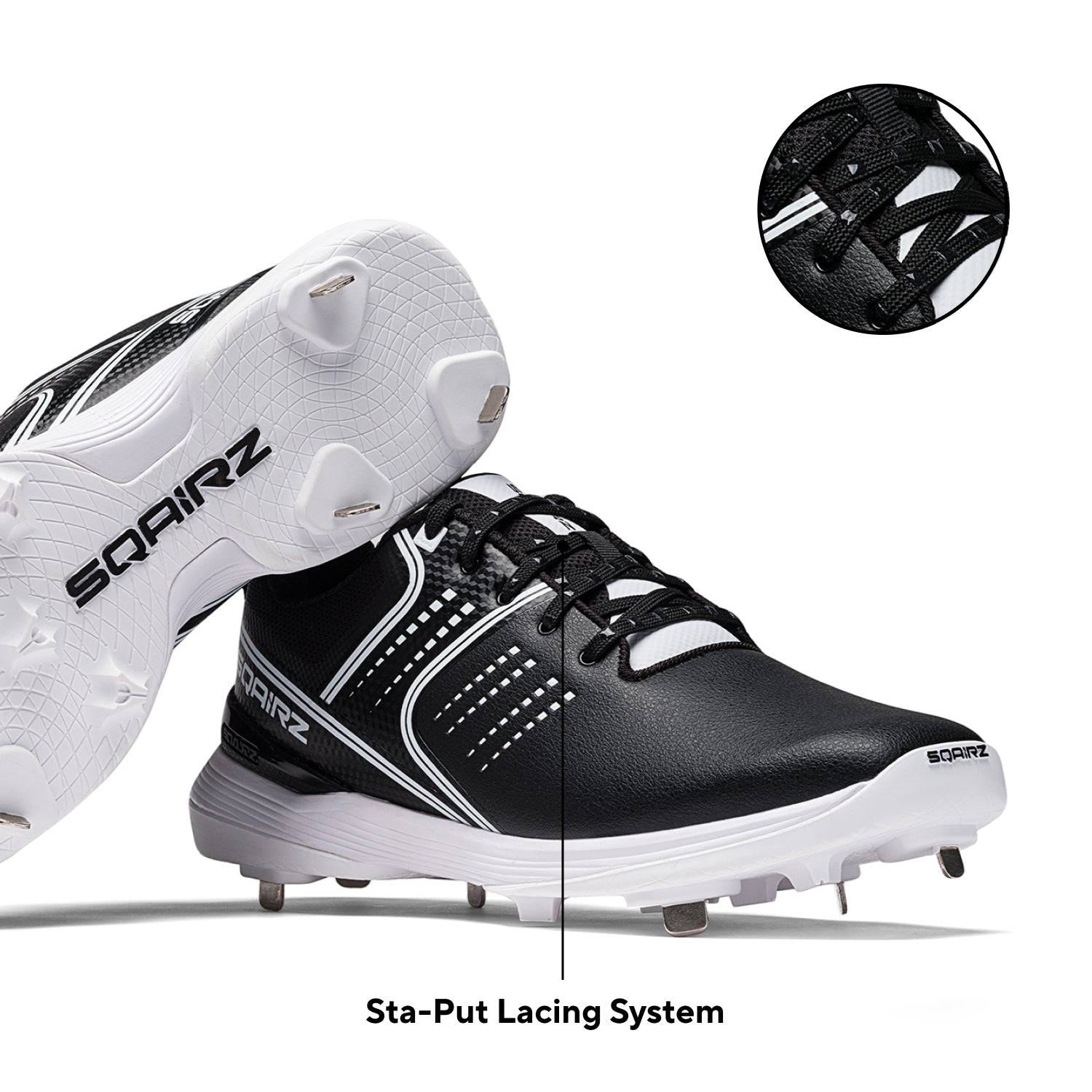 The metal version is made for serious competition. Sharp metal spikes maximize ground penetration for the strongest grip possible, giving advanced players the ultimate platform for power and precision.